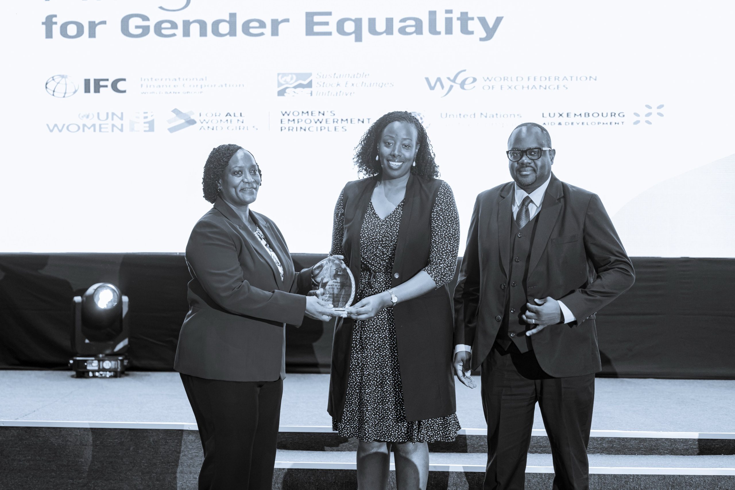 Hortense received the award at the “Ring the Bell for Gender Equality 2026” event hosted by Rwanda Stock Exchange (RSE) in Kigali on 16 March 2026, part of a global initiative promoting gender equality across financial markets.